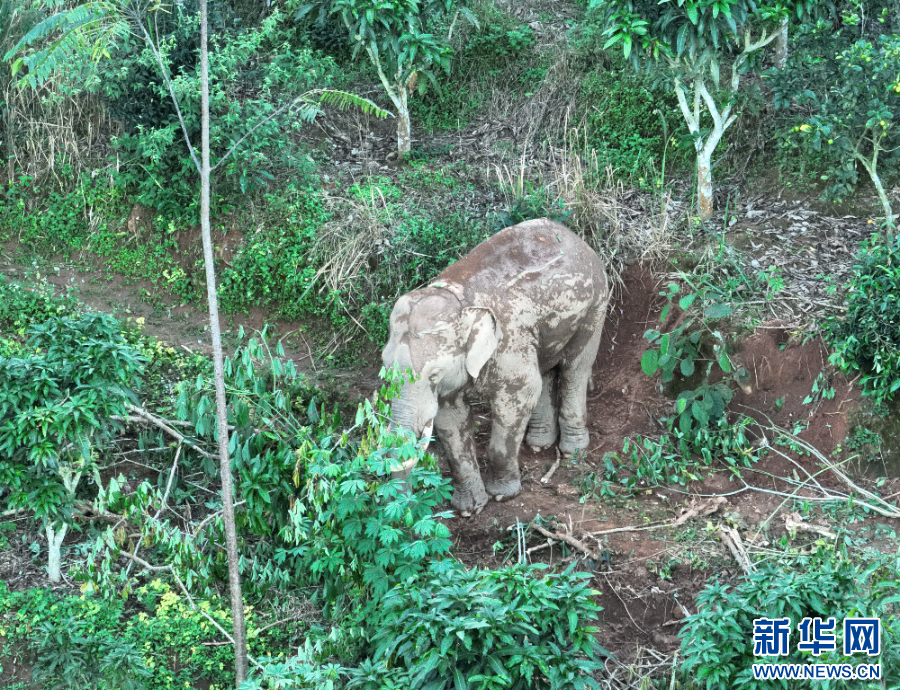 我國首次放歸自然的收容救助野象“阿寶”在野外活動(2024年11月17日攝)。新華網發(云南西雙版納國家級自然保護區管護局 供圖)