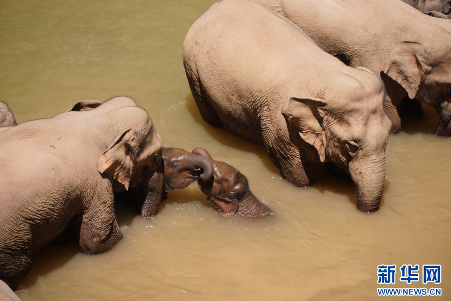 野象群正在玩耍(7月7日攝)。新華網發(徐華陵 攝)