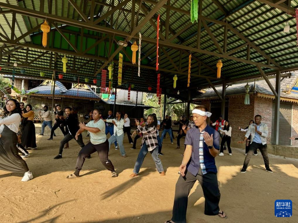 中國農業大學留學生在“三曼”村學習傣拳(2025年2月11日攝)。新華社發(任欣桐攝)