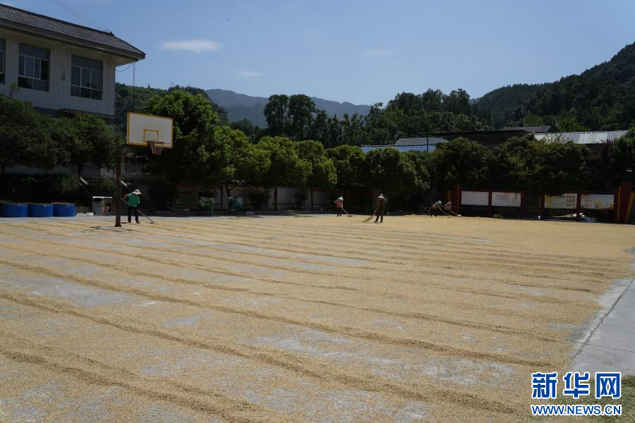 9月7日,威信縣舊城鎮文興村,農戶們正在晾曬稻谷。新華網發(威信縣融媒體中心供圖)