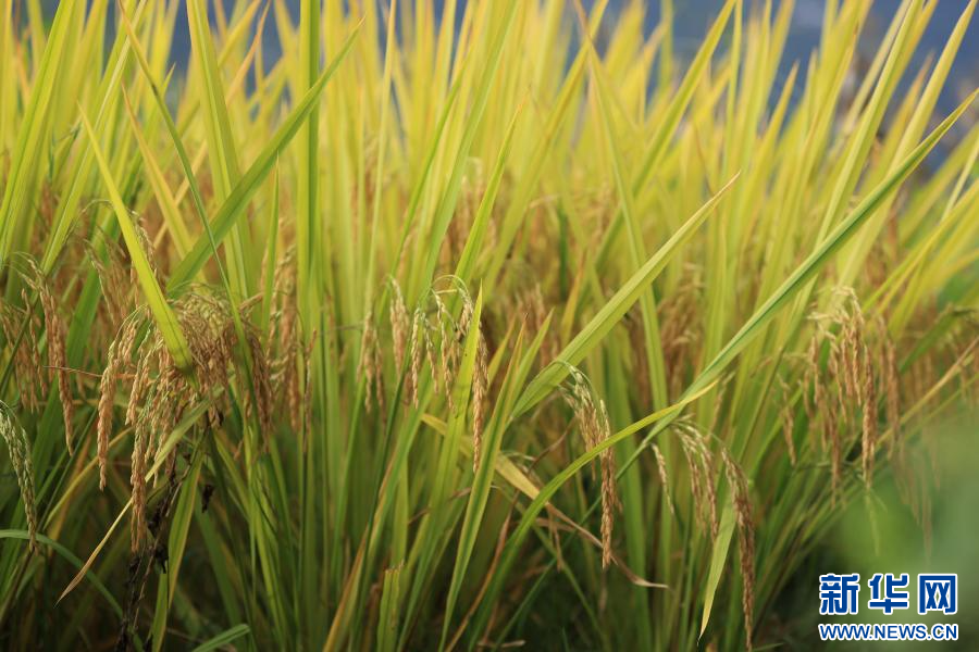 在大關縣,飽滿的稻穗壓彎稻桿(攝于9月9日)。新華網發(龍夢 攝)