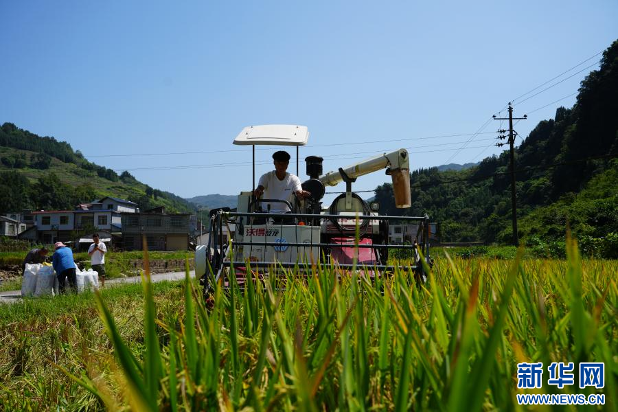 9月7日,威信縣舊城鎮文興村,農機手正操作收割機收割水稻。新華網發(威信縣融媒體中心供圖)