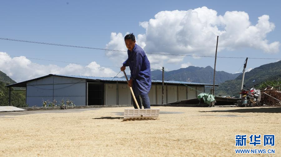 在大關縣,村民在晾曬稻谷(攝于9月9日)。新華網發(楊全偉 攝)
