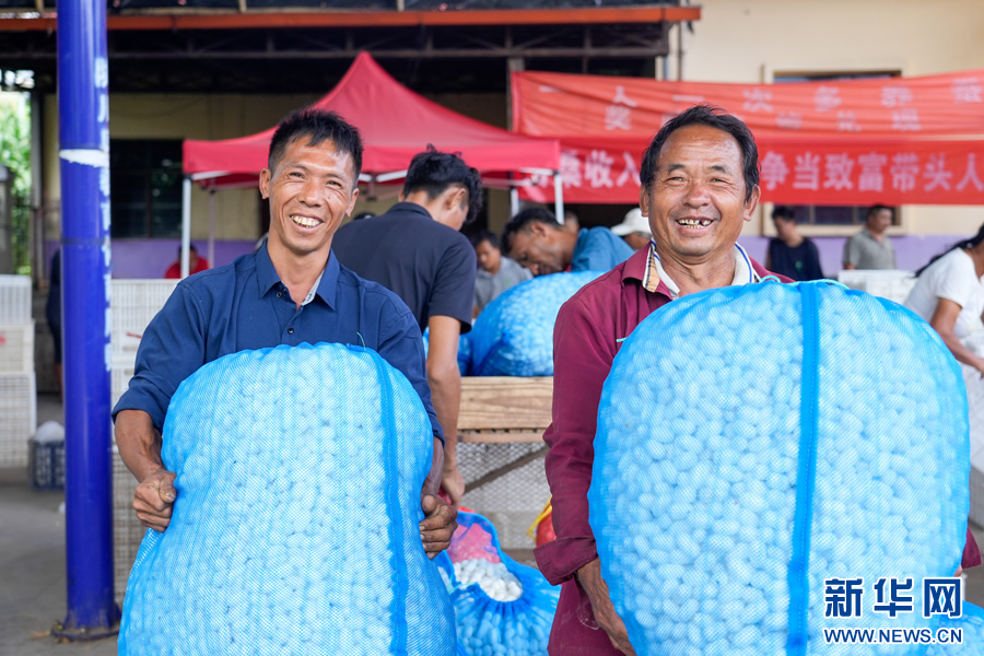 勐約鄉蠶繭大戶楊從帥夫妻出售蠶繭(9月5日攝)。新華網發(方雯青 攝)