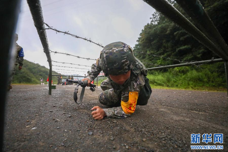 參賽隊員穿越高樁網(9月12日攝)。新華網發(杜海淵 攝)