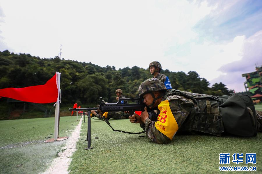 參賽隊員進行自動步槍射擊課目(9月11日攝)。新華網發(杜海淵 攝)