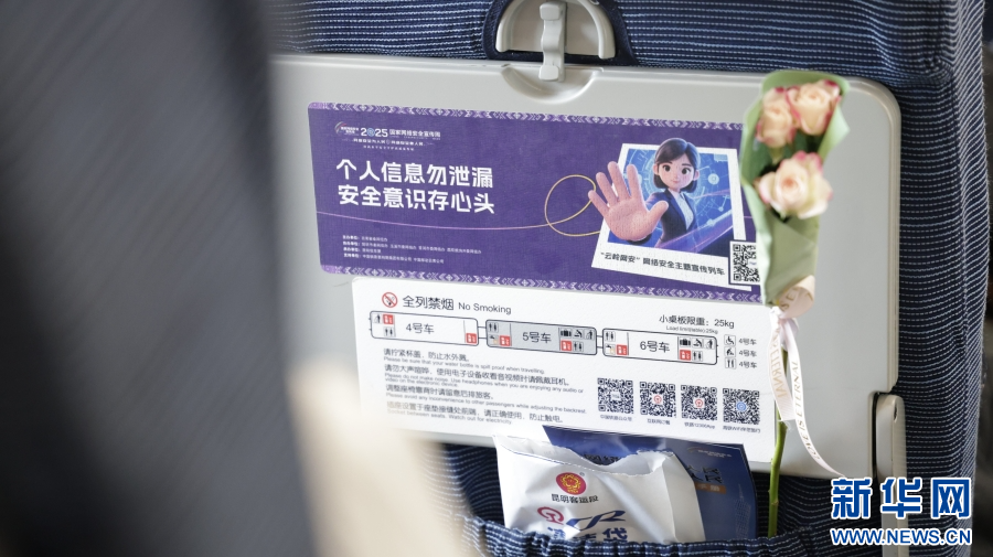 據了解,該趟列車依托中老鐵路國際通道優勢,設置了8個主題車廂,涵蓋數據安全、個人信息保護、防范電信網絡詐騙等內容。列車上還設置了“網安知識鮮花”,以玫瑰、康乃馨等花材為載體,將網絡安全知識傳播到列車每一處。