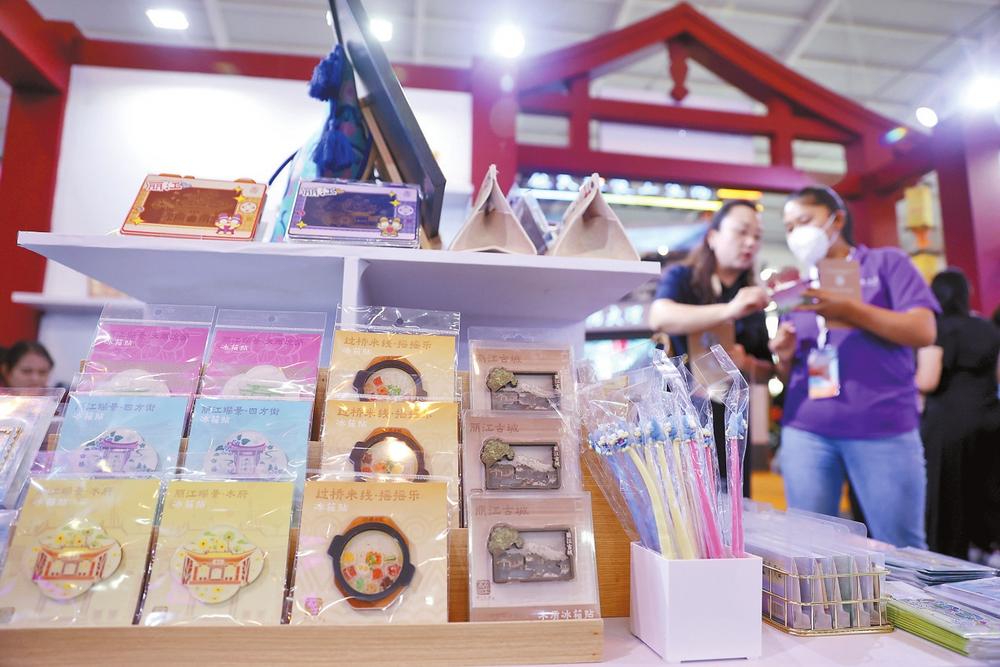 云南文博會綜合館“國圖·麗江禮物”實體體驗店內的文創產品。記者 陳飛 高吳雙 攝