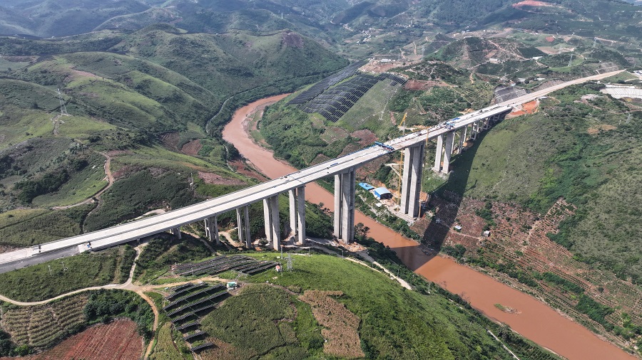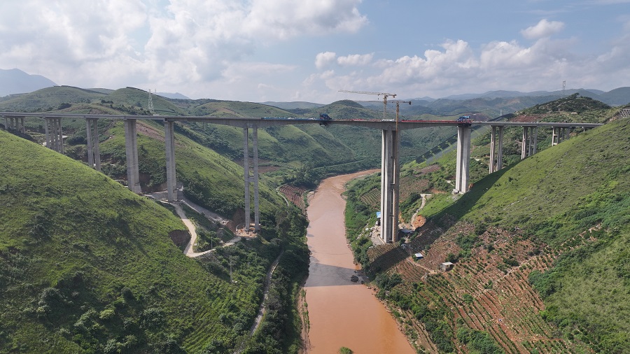 彌玉高速南盤江特大橋順利合龍(9月18日攝)。
