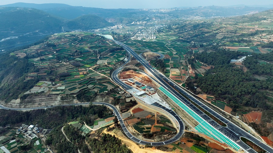 彌玉高速新哨至五山、通海北至多依樹段于2025年2月14日通車(2月14日攝)。