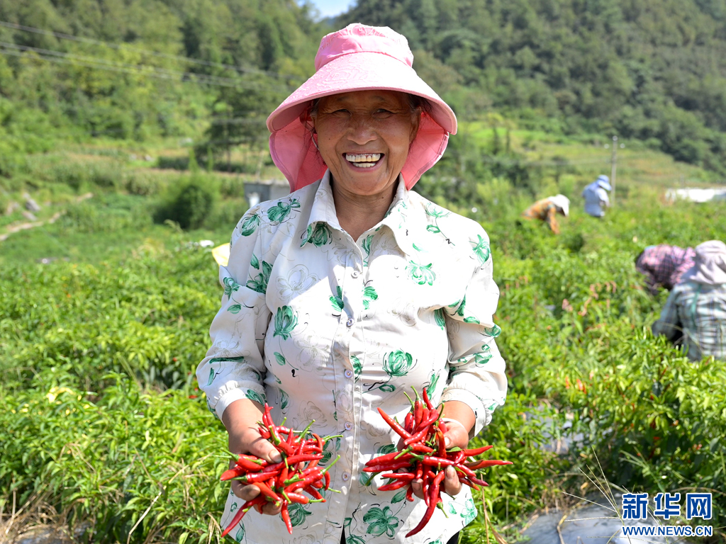 采摘辣椒的喜悅(9月12日攝)。新華網發(鎮雄縣融媒體中心供圖)