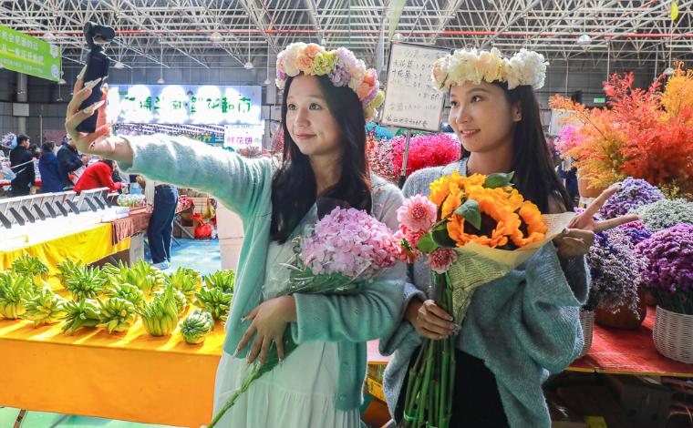 市民在昆明專題館內選購面塑野生菌冰箱貼。記者 陳飛 高吳雙 攝