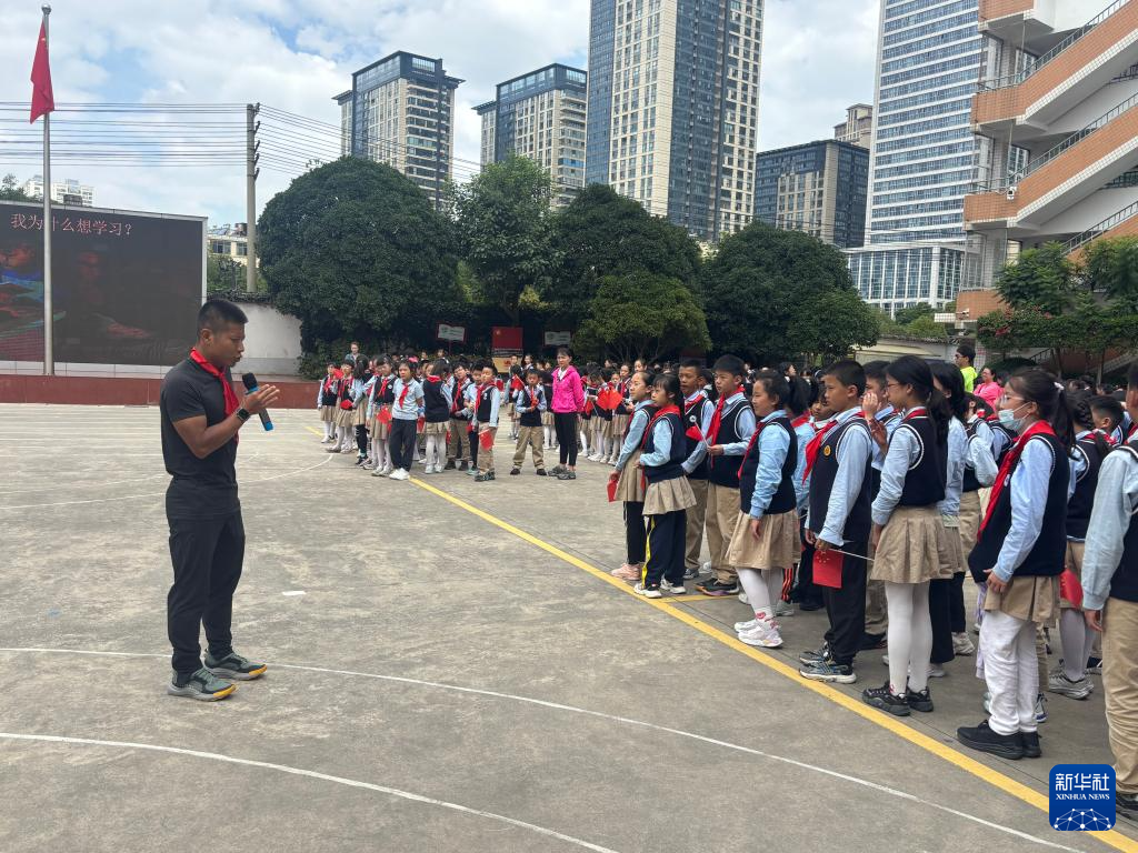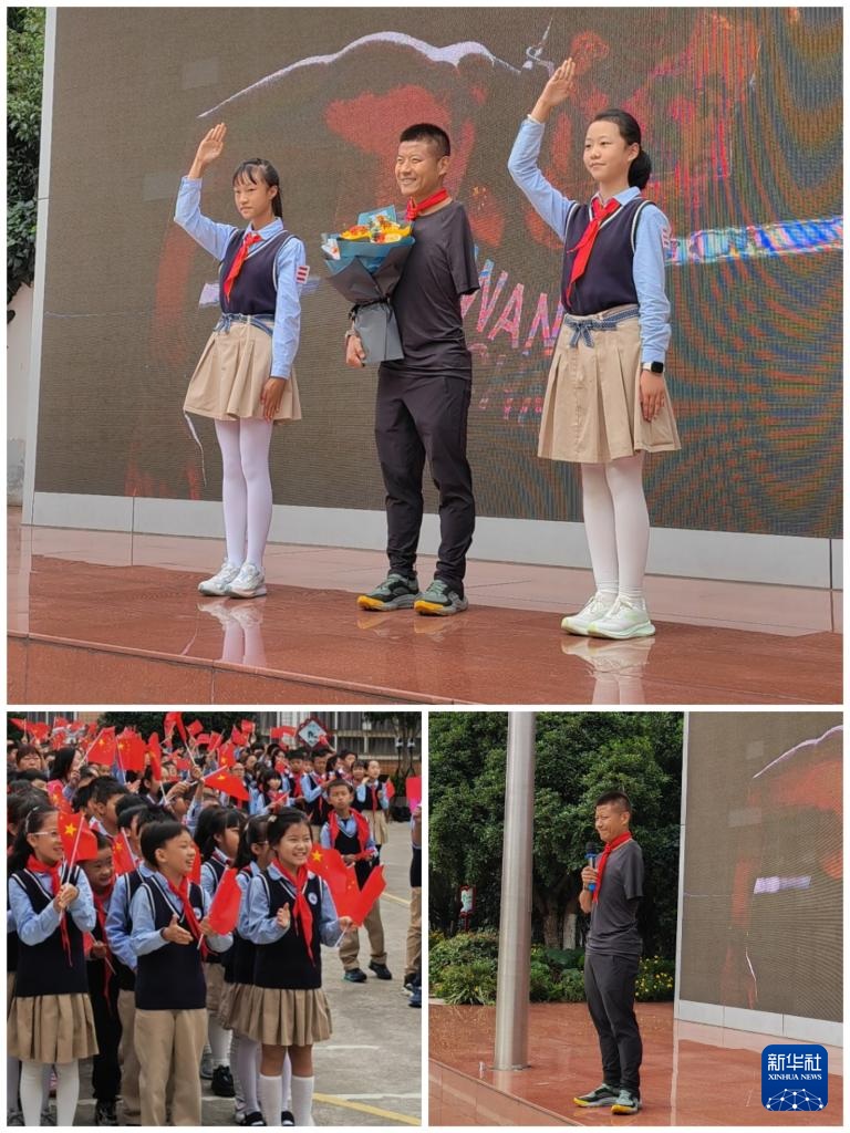 新華網昆明9月22日電(記者岳冉冉)22日,殘奧會冠軍、殘奧會鐵人三項“中國第一人”王家超走進昆明市盤龍小學教育集團人民東路校區,為孩子們開展了一堂“如果你也沒有左手”的勵志演講。