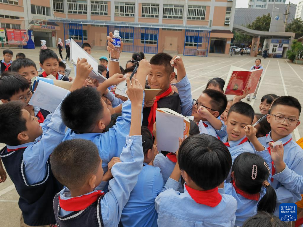 孩子們找王家超簽名留念。新華社記者岳冉冉 攝