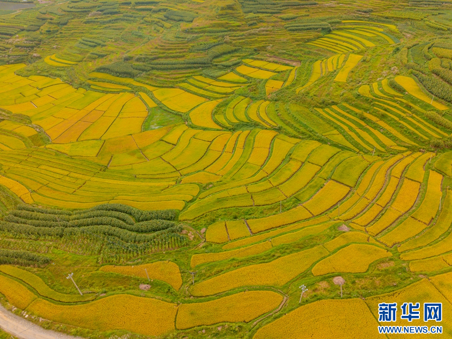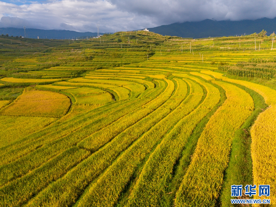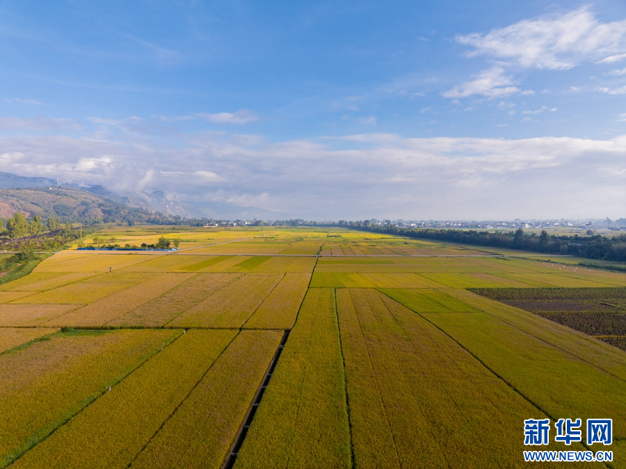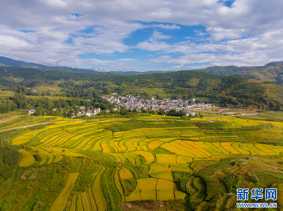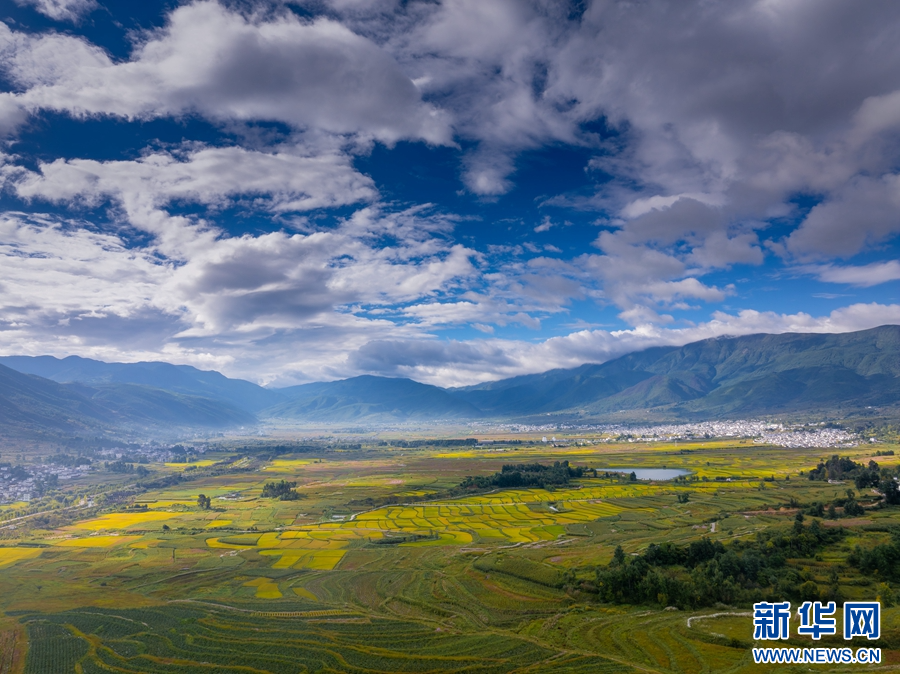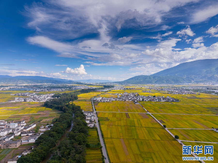 在洱源縣右所鎮拍攝的稻田(攝于9月20日)。新華網發(羅新才 攝)