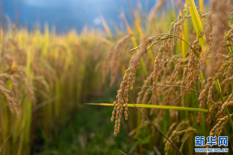 洱源縣鳳羽鎮稻田里,沉甸甸的稻穗壓彎了枝頭(攝于9月21日)。新華網發(羅新才 攝)