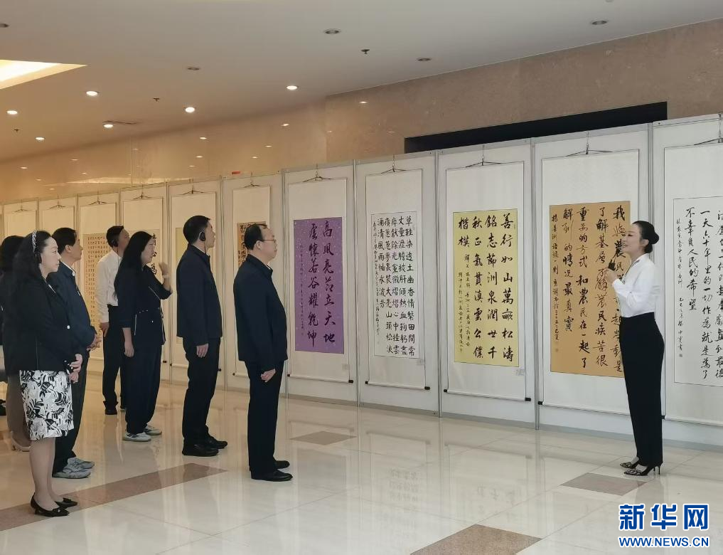 與會嘉賓參觀“不忘初心、奉獻一生的楷?!獥钌浦蕖敝黝}文藝作品展。新華社記者 李溪巖 攝