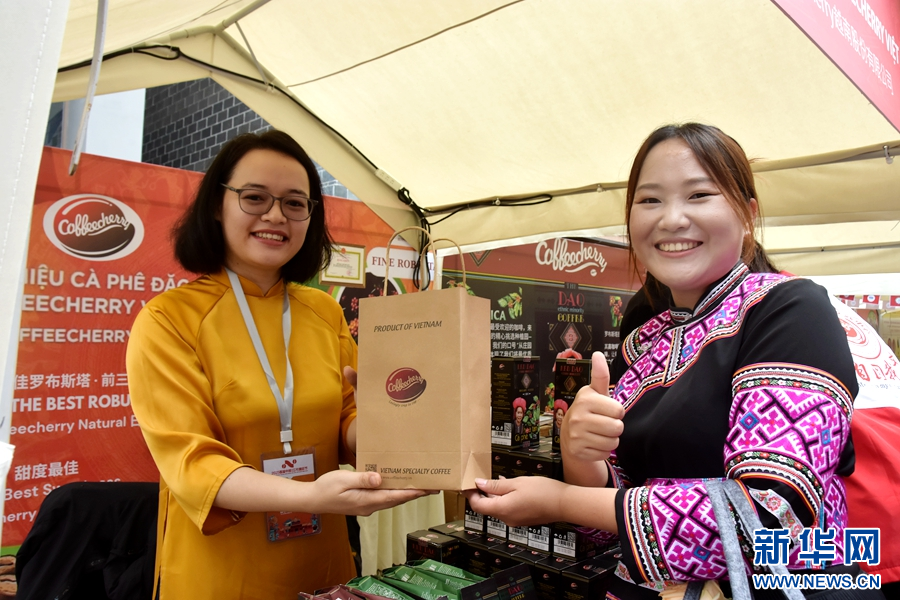 首屆中越(紅河)咖啡節展會現場,逛展民眾購買越南咖啡(攝于9月27日)。新華網發(薛瑩瑩 攝)