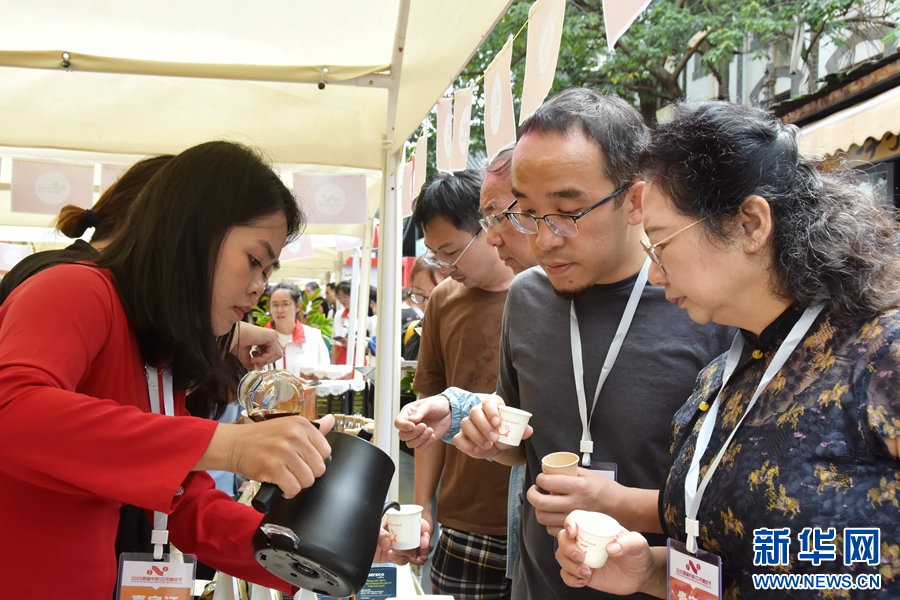 首屆中越(紅河)咖啡節展會現場,參會嘉賓和逛展民眾在一家越南企業的展臺前品嘗咖啡(攝于9月27日)。新華網發(薛瑩瑩 攝)