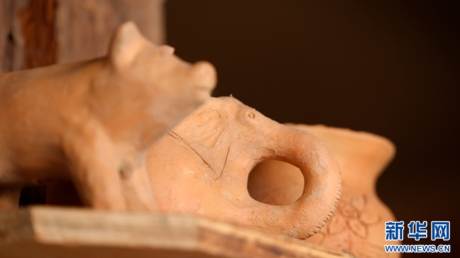 用慢輪制陶技藝制作的大象作品(3月8日攝)。新華網發(徐華陵 攝)