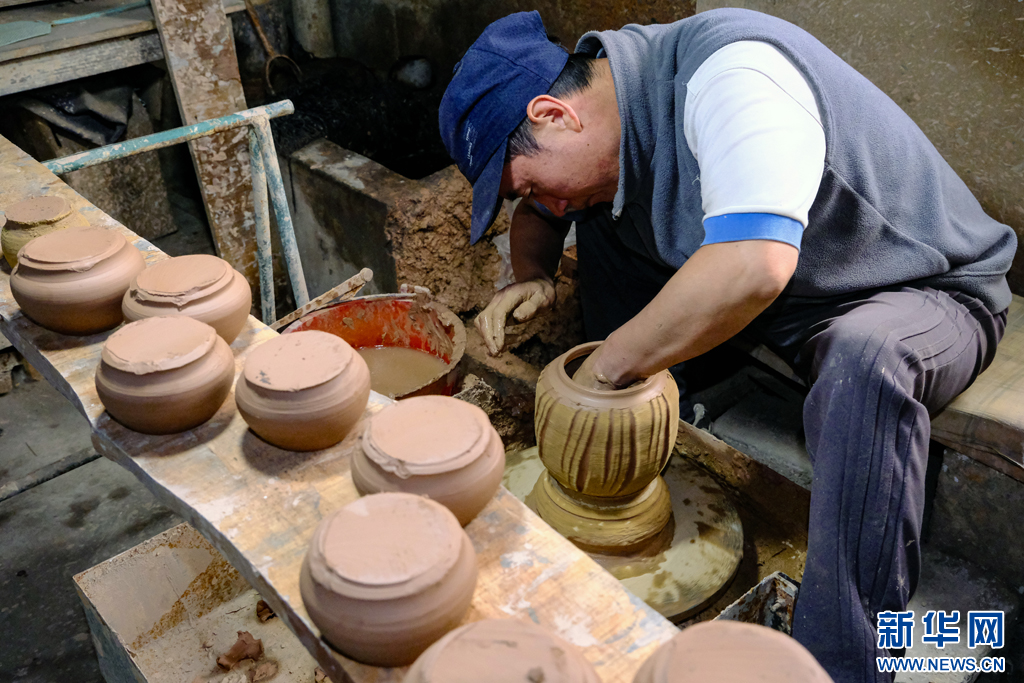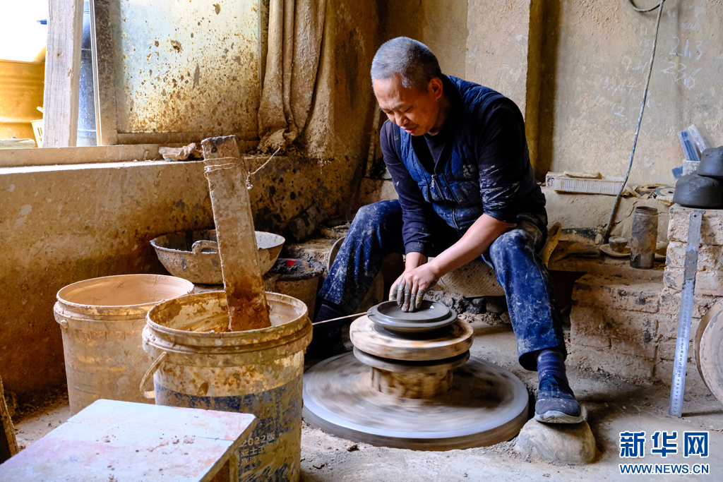 工人手工拉坯,準備制作傳統土陶產品(9月29日攝)。新華網發(張洪科 攝)