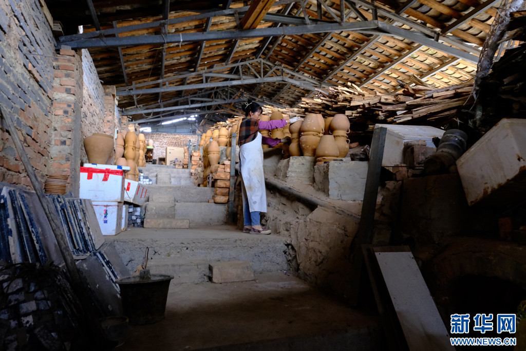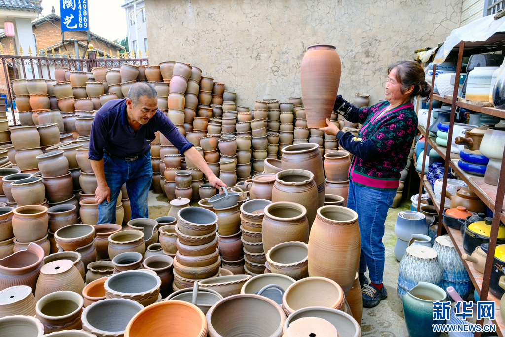 工人整理傳統土陶產品(9月29日攝)。新華網發(張洪科 攝)
