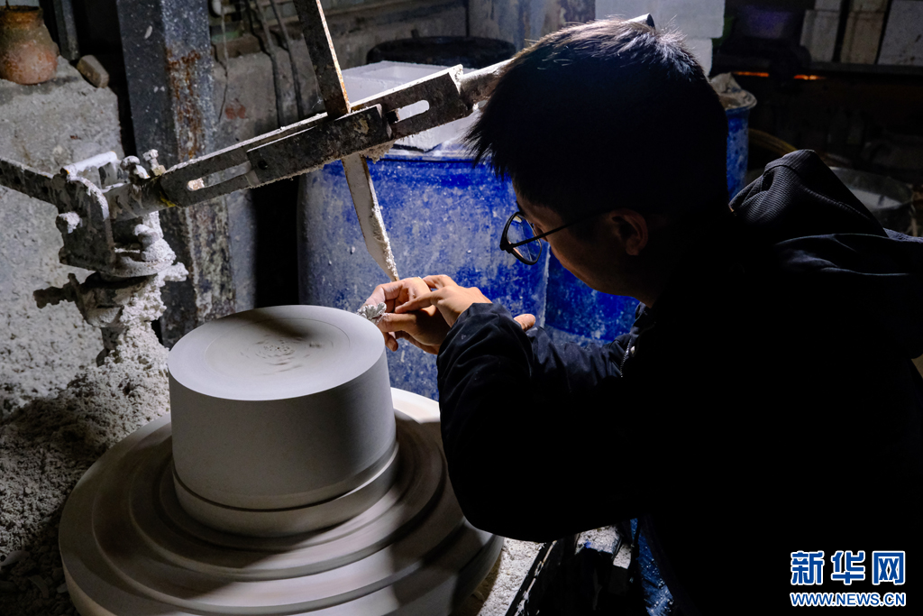 工人手工拉坯,準備制作茶葉罐(9月29日攝)。新華網發(張洪科 攝)