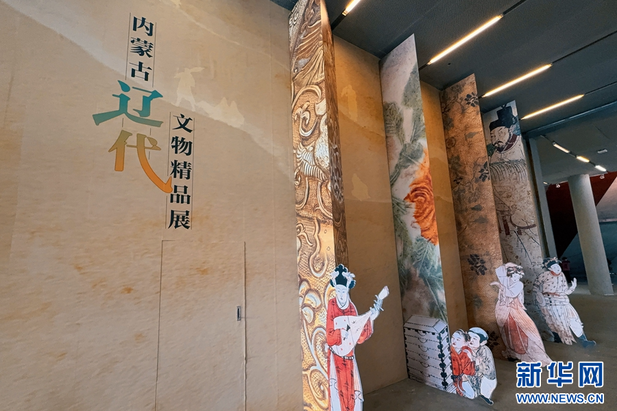 “契丹印跡——內蒙古遼代文物精品展”入口處的陳設(攝于9月30日)。新華網發(劉東 攝)
