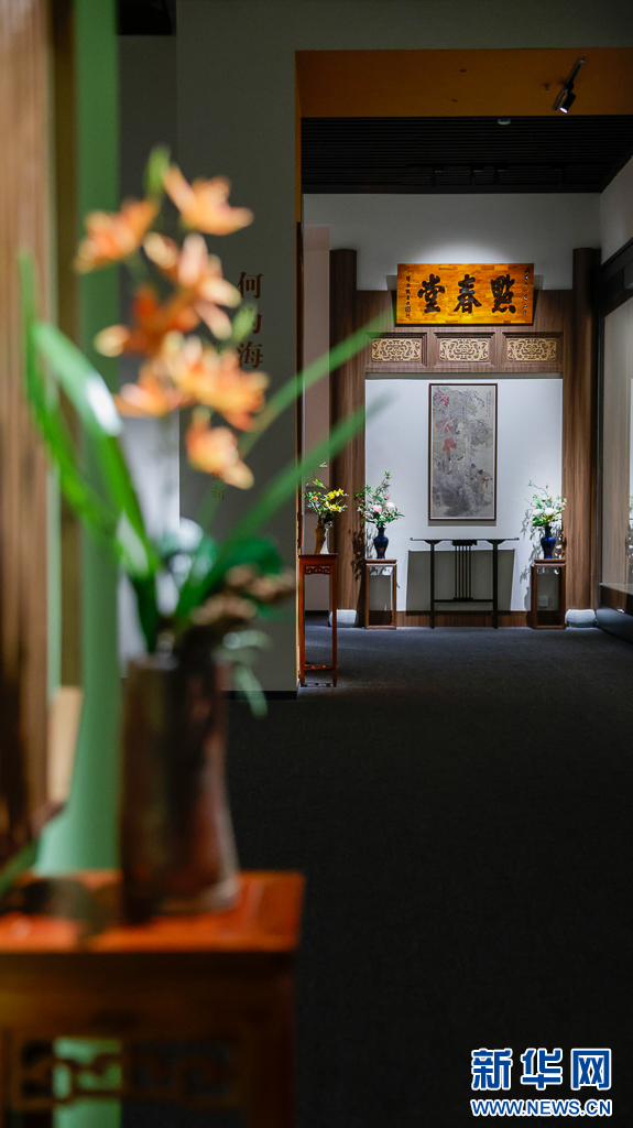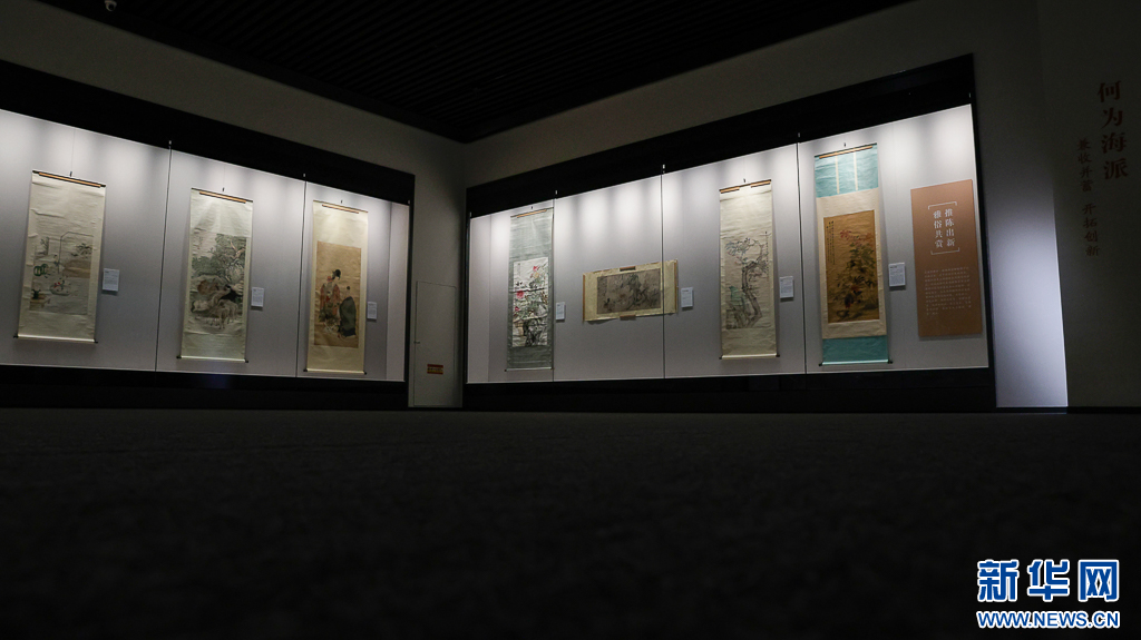 “上?!ずI稀虾J袣v史博物館藏海派繪畫名家作品展”展廳局部(攝于9月30日)。新華網發(劉東 攝)