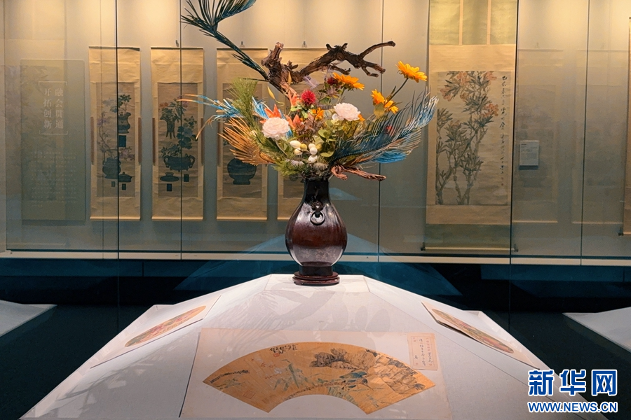 “上?!ずI稀虾J袣v史博物館藏海派繪畫名家作品展”展廳一角(攝于9月30日)。新華網發(劉東 攝)