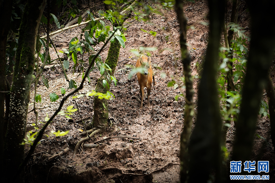 在野外時刻保持警惕的赤麂(7月7日攝)。新華網發(徐華陵 攝)