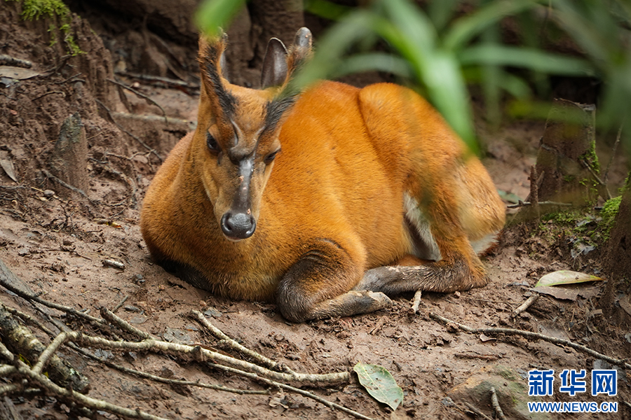 正在打哈欠的赤麂(7月7日攝)。新華網發