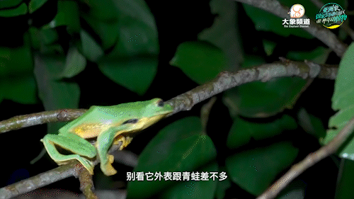 偽裝在樹葉間的黑蹼樹蛙(資料圖)。新華網發(張鵬 攝)