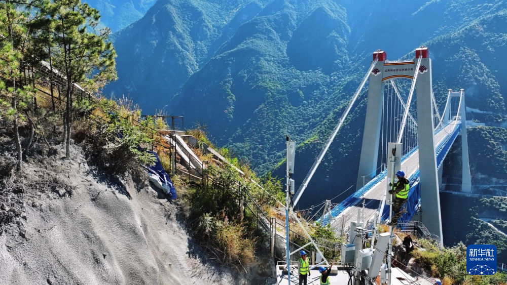 中國移動云南公司在麗香鐵路虎跳峽金沙江鐵路大橋開展網絡建設。新華社發