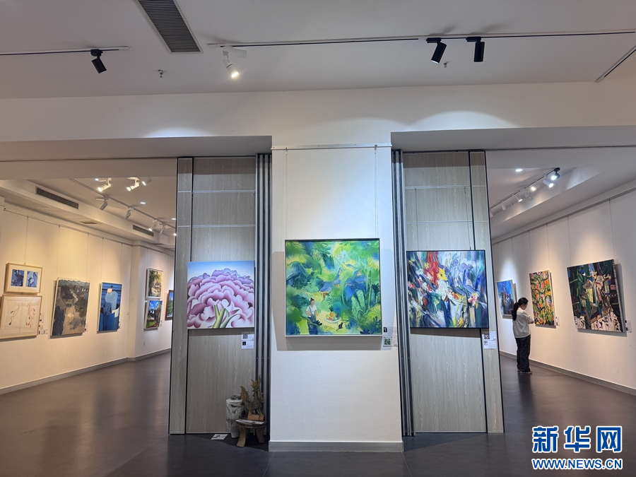 游客正在參觀第八屆西雙版納國際美術展(10月3日攝)。新華網發(柴靜 攝)