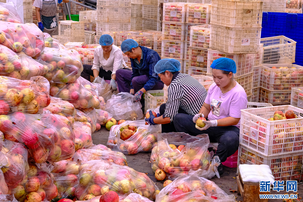 工人分揀石榴(10月3日攝)。新華網發(張洪科 攝)