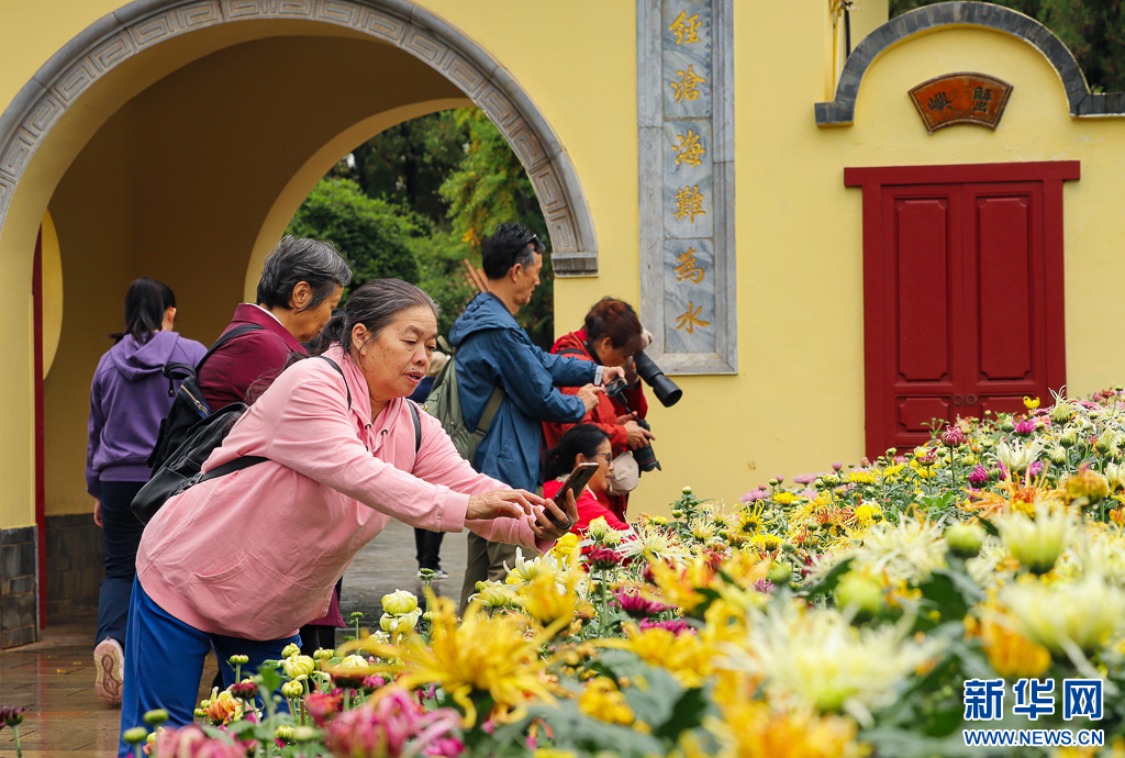 前來大觀公園觀賞菊花的游客(10月1日攝)。新華網發(鄭益 攝)