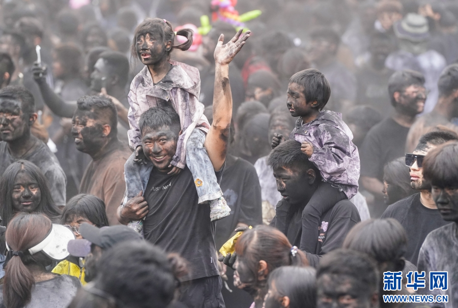 家長帶著小朋友在墨江參加“抹黑臉”狂歡(5月2日攝)。新華社記者 陳欣波 攝
