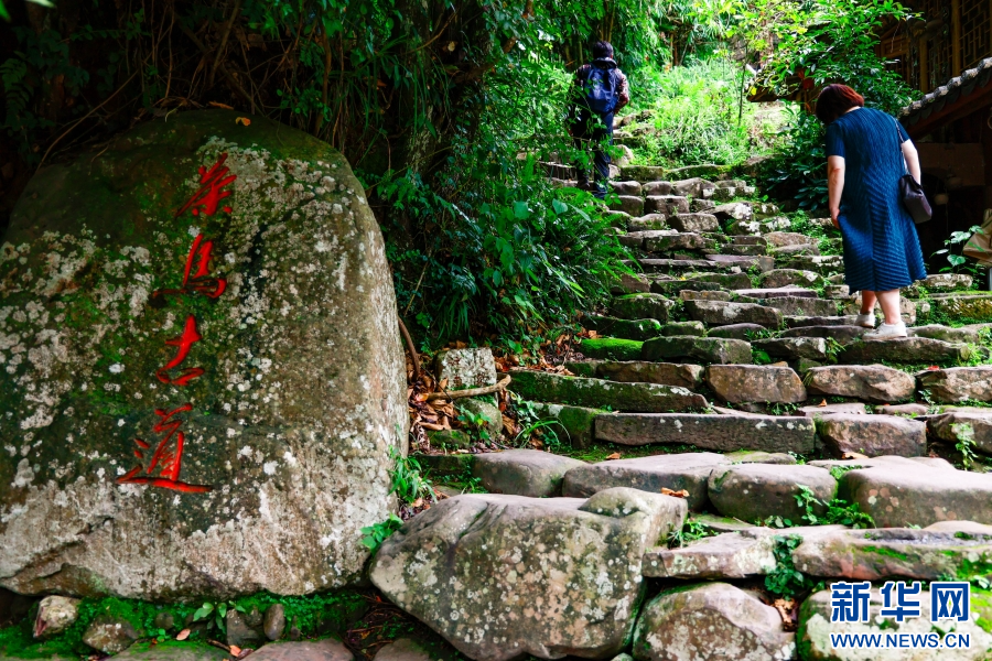 游客行走在茶馬古道那柯里路段遺址上(8月5日攝)。新華網發(劉云 攝)