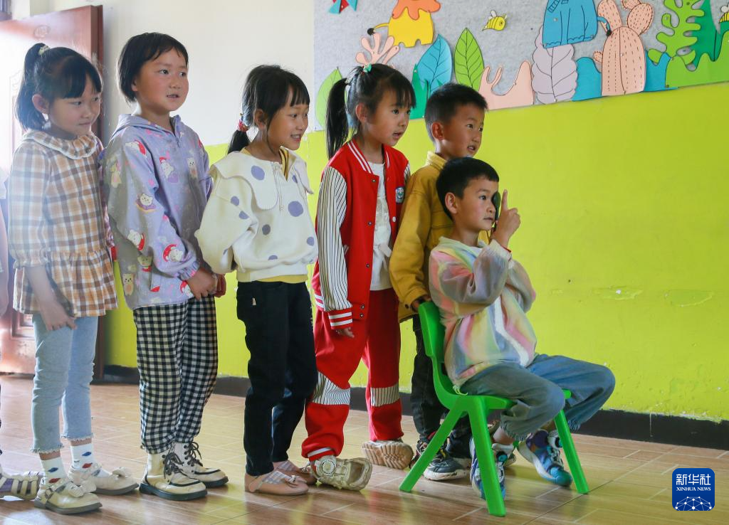 沾益區花山街道一幼兒園小朋友在體檢中檢測視力(2024年4月10日攝)。新華社發(楊俊鵬攝)