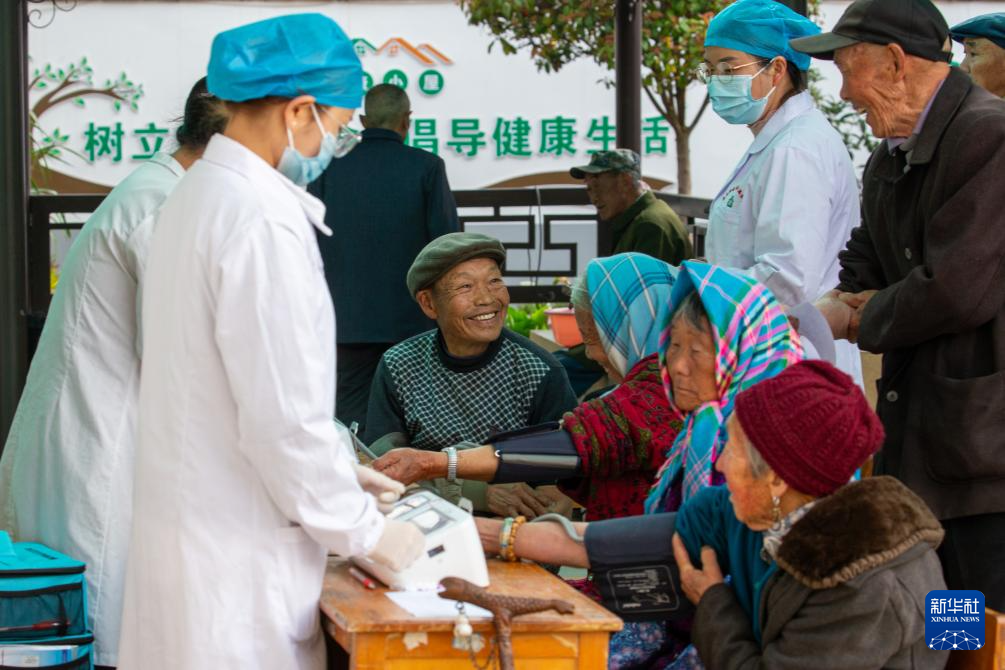 沾益區金龍街道桃園社區,醫生為老年人體檢(2025年3月12日攝)。新華社發(楊俊鵬攝)