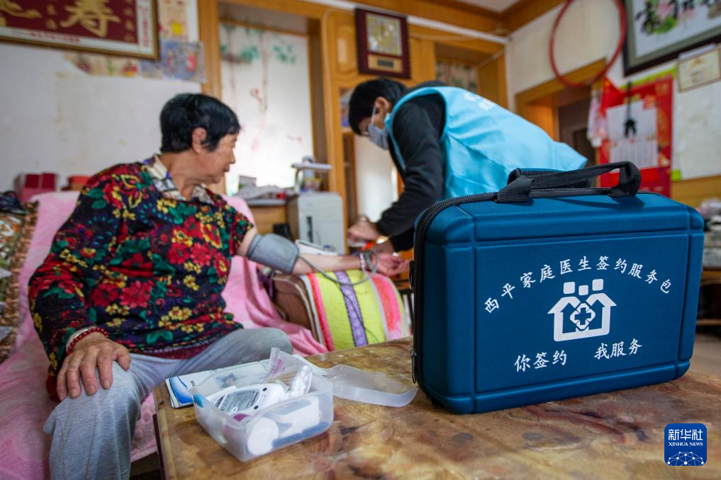 沾益區西平街道玉龍社區村醫保瓊惠入戶為社區居民開展家庭醫生履約服務(2025年10月21日攝)。新華社發(楊俊鵬攝)