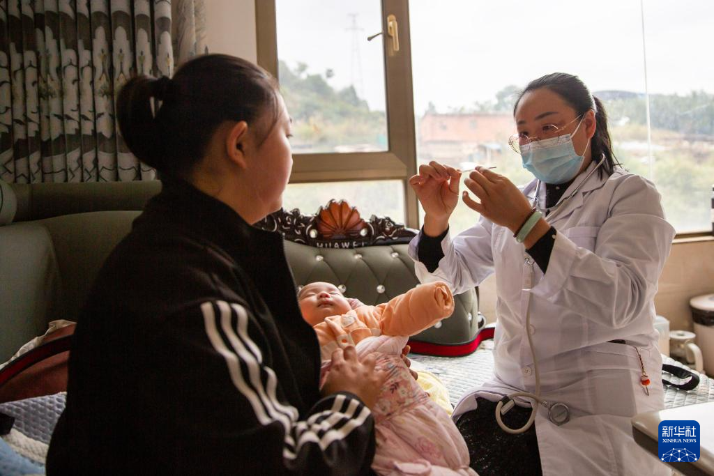 沾益區龍華街道新龍社區村醫付麗清為社區孕產婦和兒童進行入戶隨訪(2025年10月23日攝)。新華社發(楊俊鵬攝)
