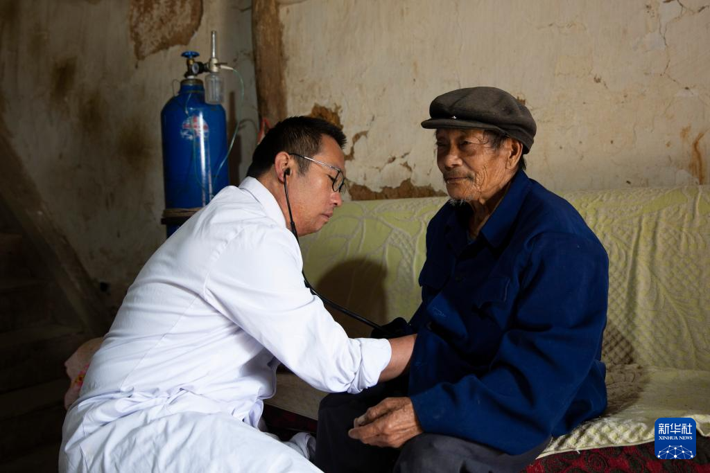 沾益區人民醫院呼吸科醫生李培猛入戶為患者聽診(2025年10月22日攝)。新華社發(楊俊鵬攝)
