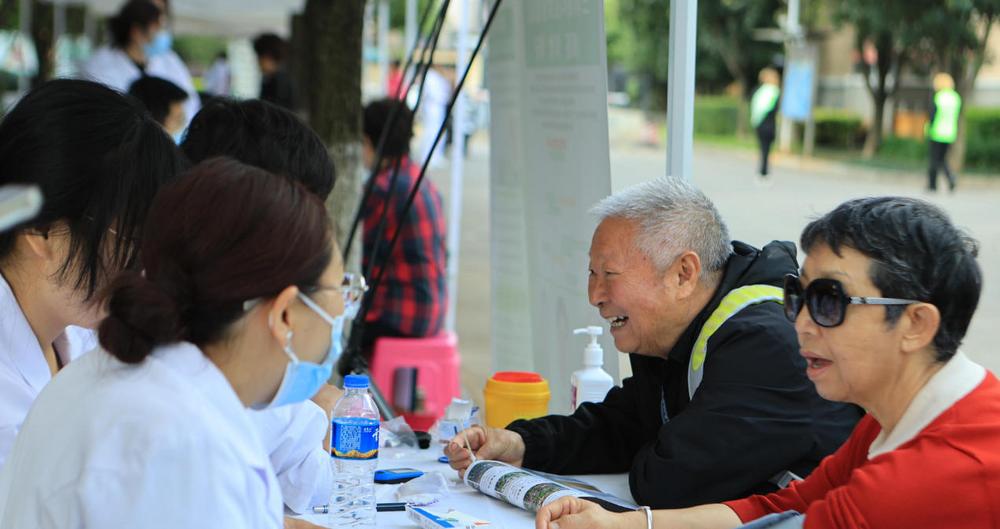 2025年昆明市 “敬老月” 啟動儀式上,志愿者為老年人測血壓、測血糖。記者 高吳雙 攝