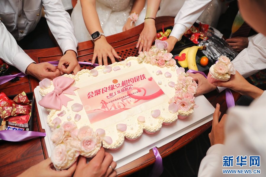 列車工作人員為新人們準備的蛋糕(攝于10月28日)。新華網發(楊紫軒 攝)