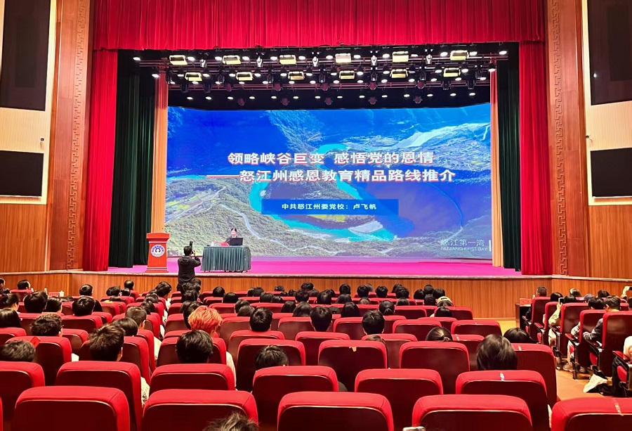 中共怒江州委黨校教師盧飛帆系統推介了怒江州感恩教育的教學體系和特色教學模式。中共怒江州委黨校教師張婷開展了一堂思政課,通過“老縣長”高德榮的感人事跡和獨龍族的滄桑巨變,詮釋“思源、感恩、奮進”的核心要義。