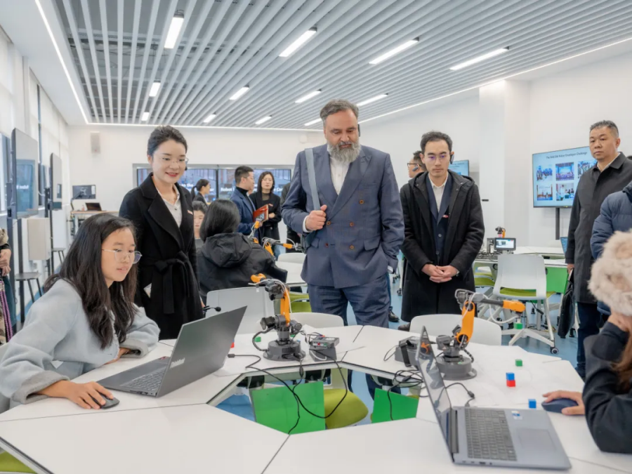 訪校期間,德方代表一行實地參觀了云南工商學院的校園環境、實訓基地與智慧教室,深入了解了學?!耙詫W生為中心”的辦學理念與產教融合實踐。德方代表對學校先進的硬件設施、學生參與的真實企業項目表現出濃厚興趣,多次駐足與師生現場交流,并高度關注學校的實訓條件與育人成果。
