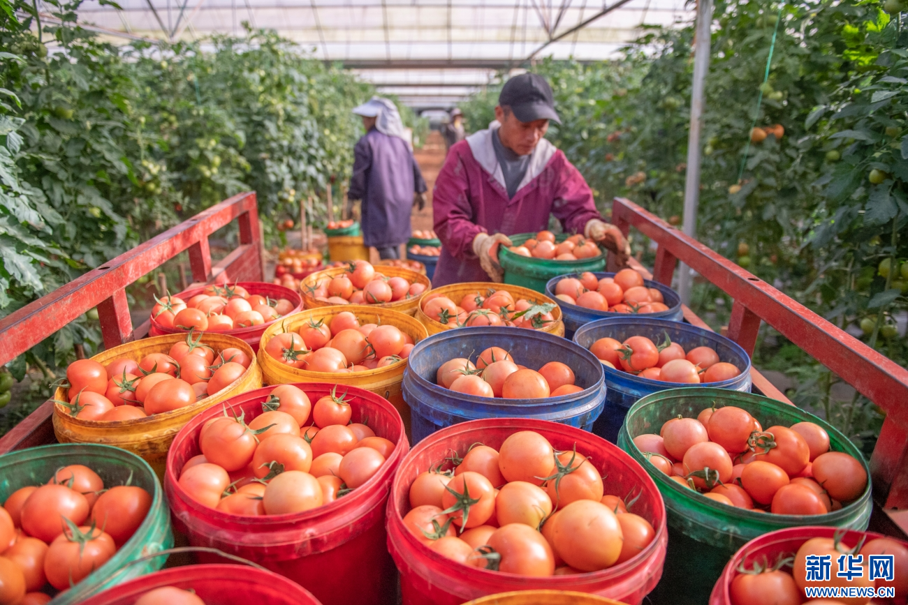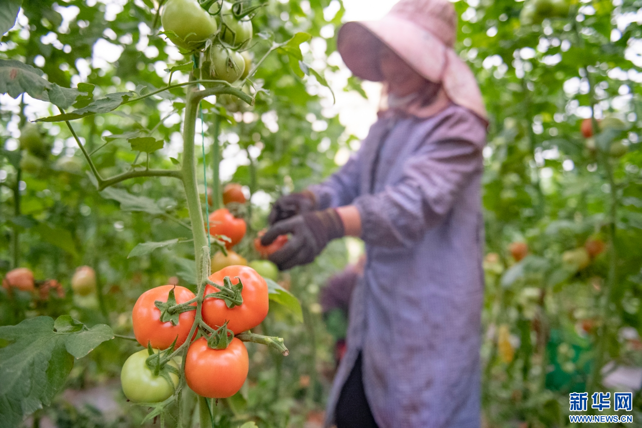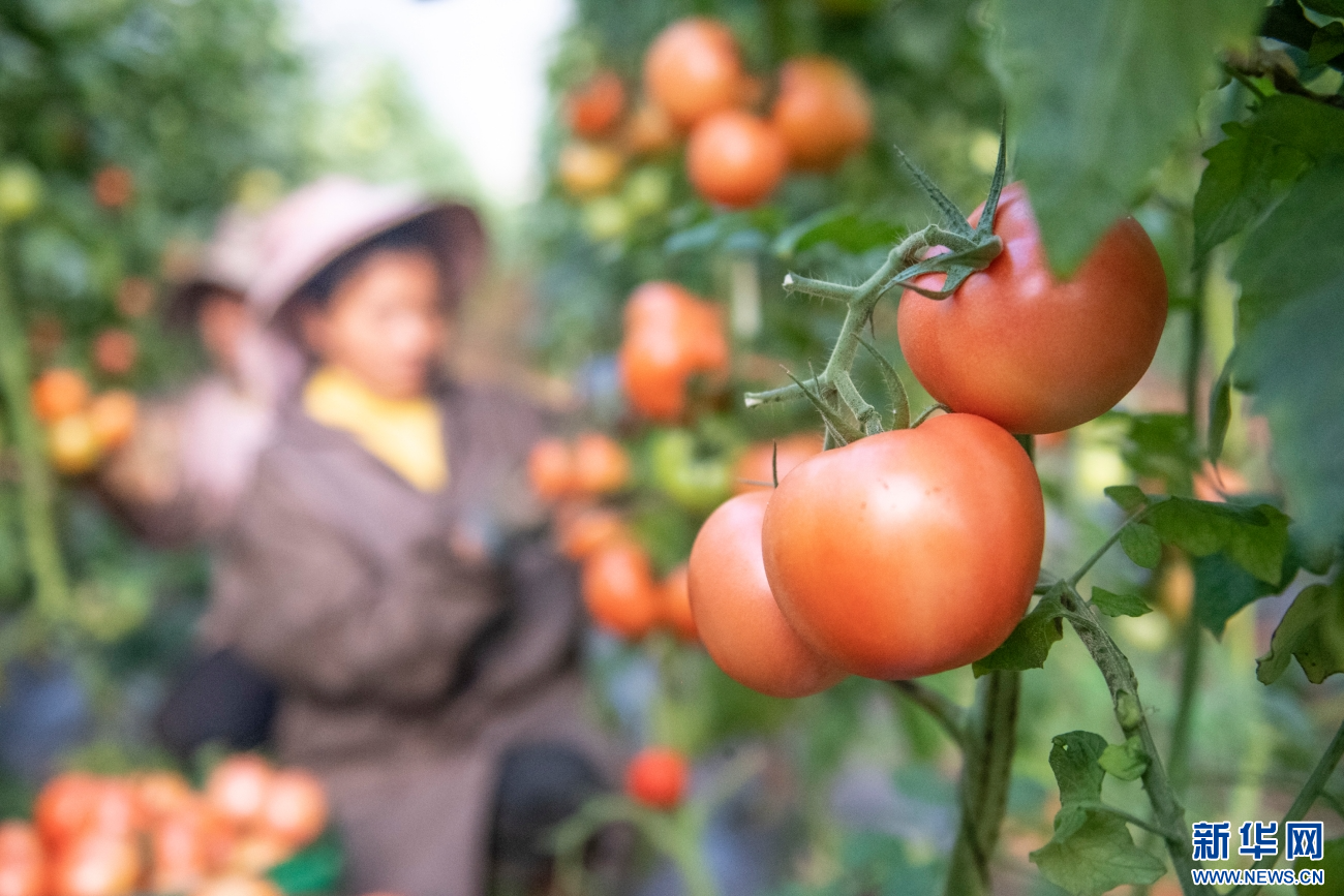 工人們采摘成熟的西紅柿(11月6日攝)。新華網發(熊平祥 攝)