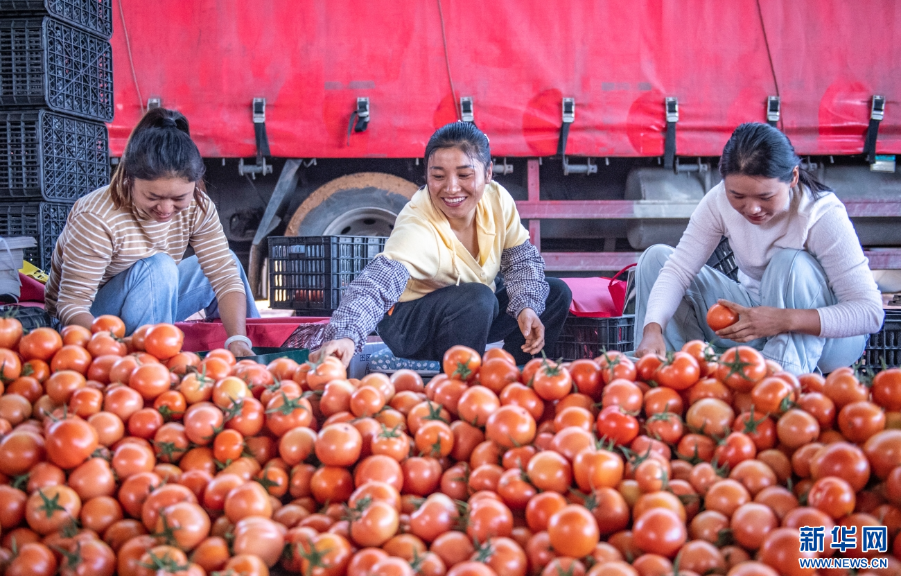 工人們正在分揀西紅柿(11月6日攝)。新華網發(熊平祥 攝)